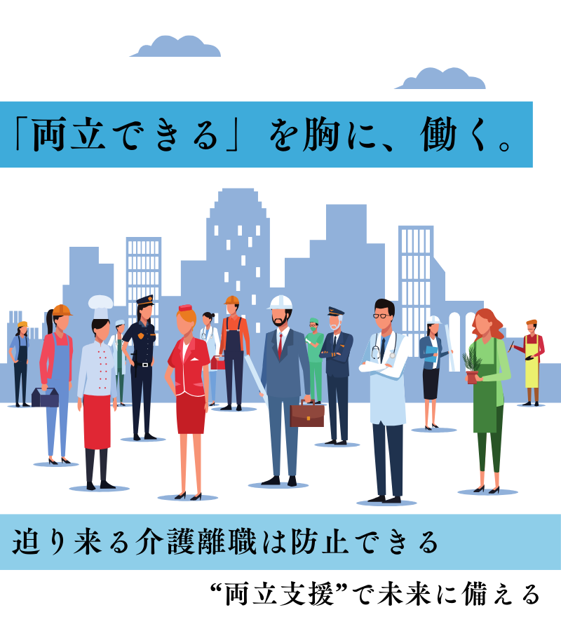 専門職としての経験を活かし、社内実態調査アンケートの実施・分析や介護に直面する社員様への個別面談などを通じて仕事と介護の両立を支援。社会問題「介護離職」の防止につなげます。