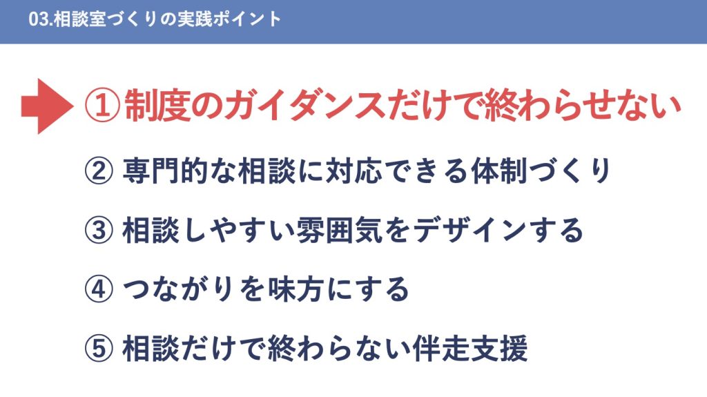 つまり、制度を“使える状態”に変えるのが相談室に必要な力なんです!
